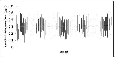 Suppose we want to compare a sample population or sample mean \((\mu)\) to a benchmark value \((c)\) - Could be our water quality benchmark of \(c=500 \mu g/L\)