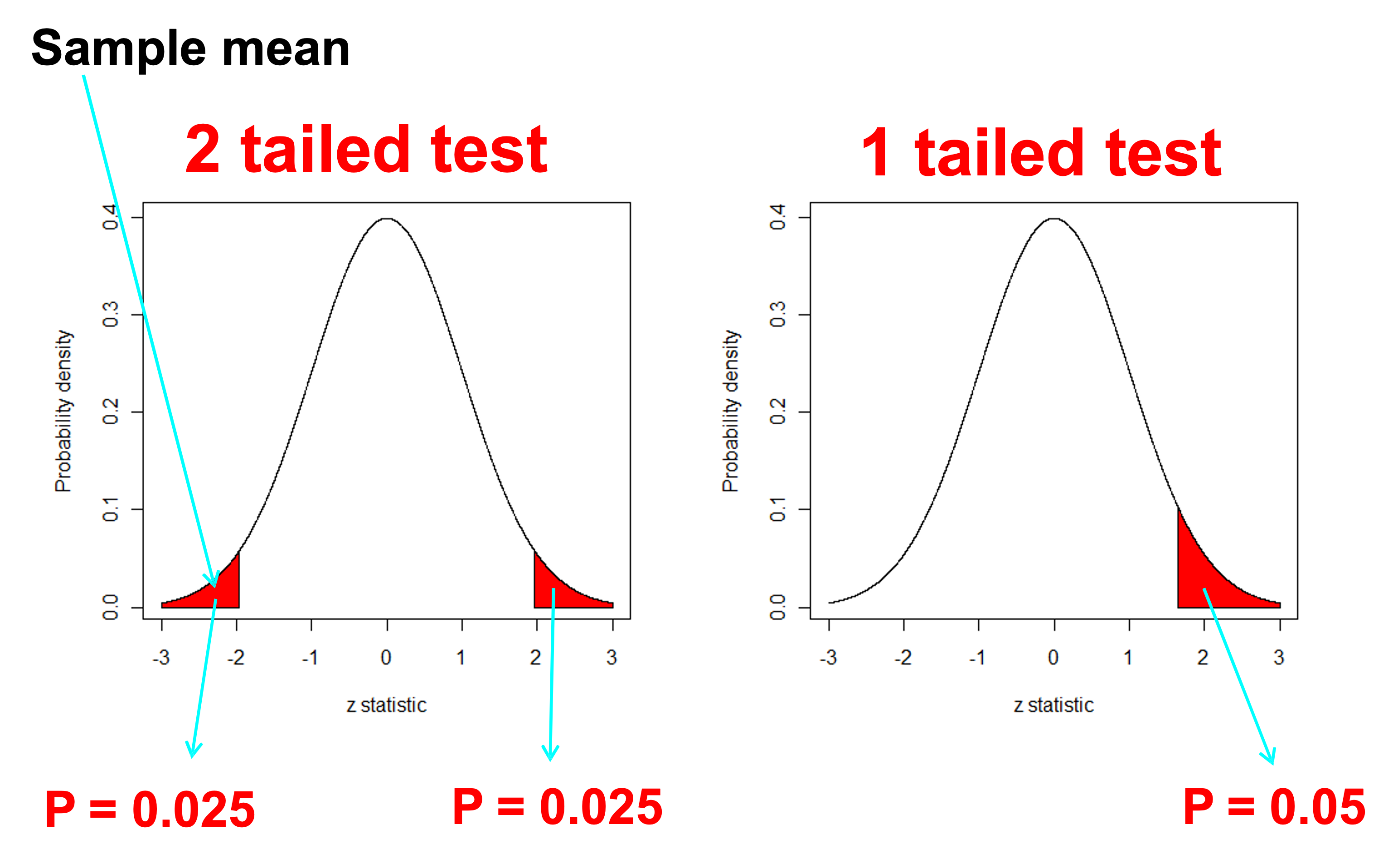 for the 95% confidence interval, \(\alpha = 0.05\) and \(Z_{\alpha/2} = 1.96\) i.e. 2 standard errors from the mean.