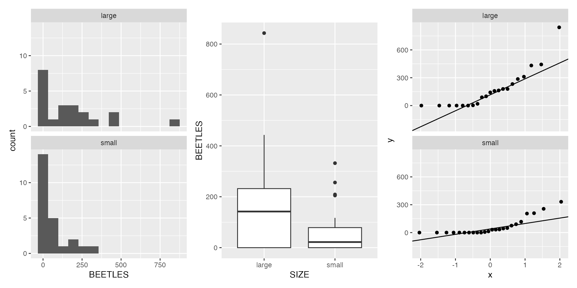 The beetle dataset was used in last week’s lecture to demonstrate the non-parametric Wilcoxon rank-sum test.