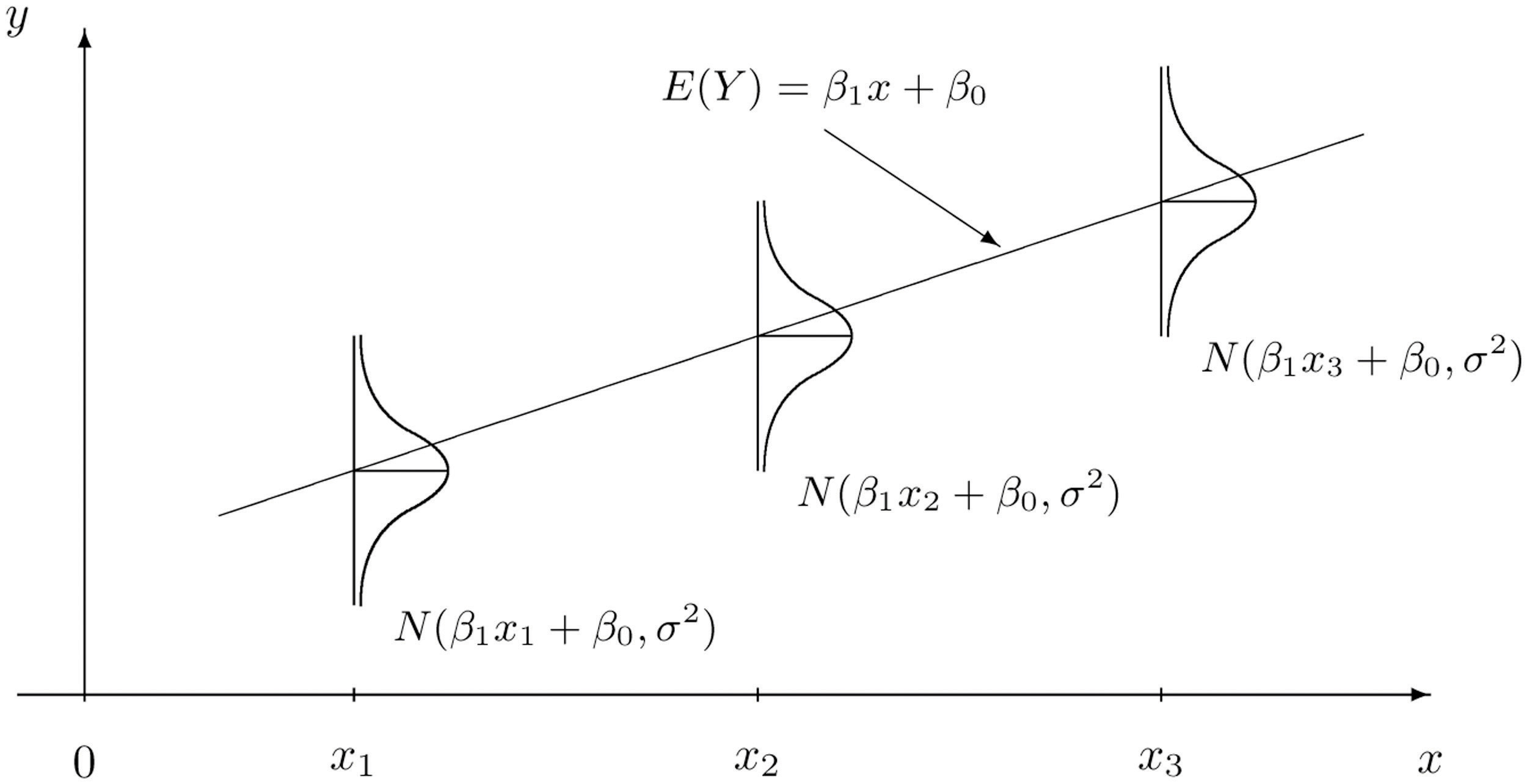 \[ Y_i = \beta_0 + \beta_1 x + \epsilon \]
