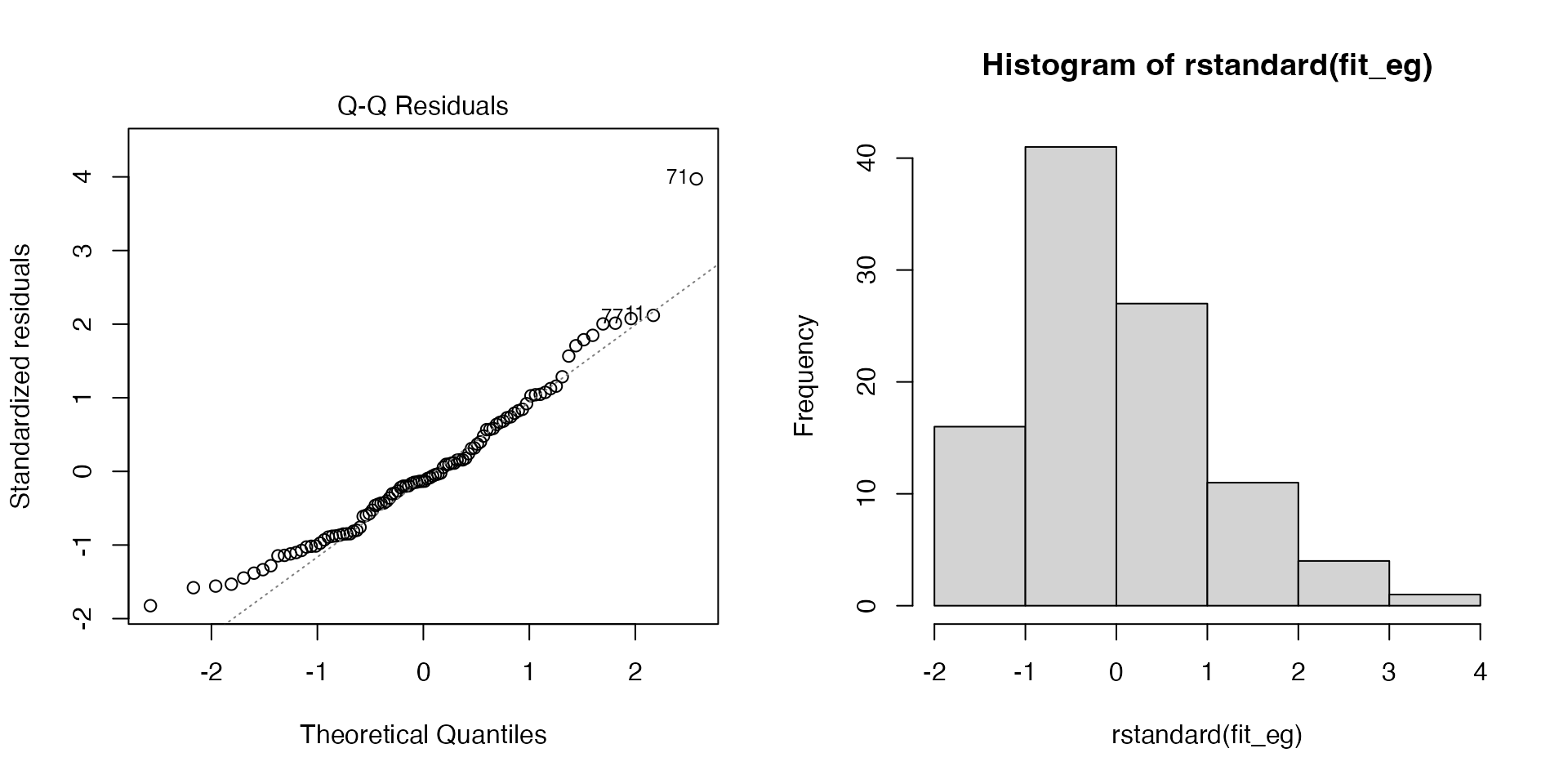 F-statistic: 246.8 on 1 and 926 DF, p-value: < 2.2e-16Multiple R-squared: the proportion of variance (0-1) explained by the model (for simple linear regression).Adjusted R-squared: the proportion of variance (0-1) explained by the model, adjusted for the number of predictors (for multiple linear regression).parent: 21.05%.”Call:
