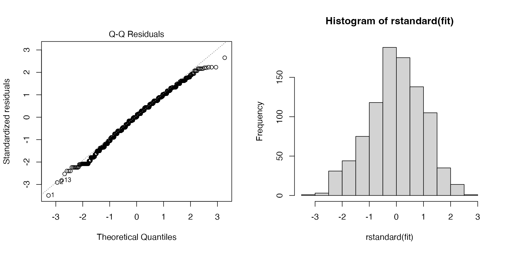 F-statistic: 246.8 on 1 and 926 DF, p-value: < 2.2e-16Call: the model formulaResiduals: distribution of the residualsCall: