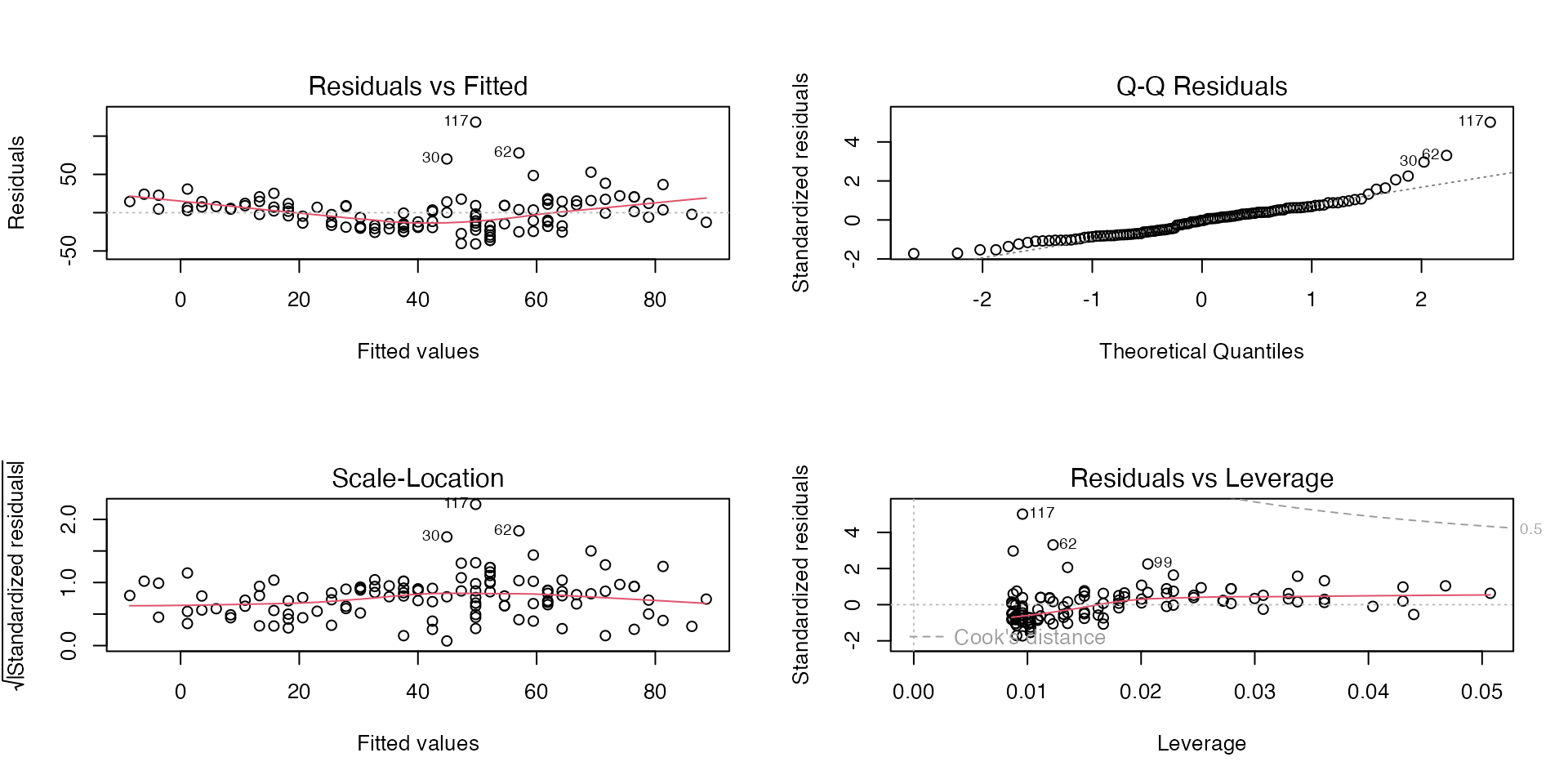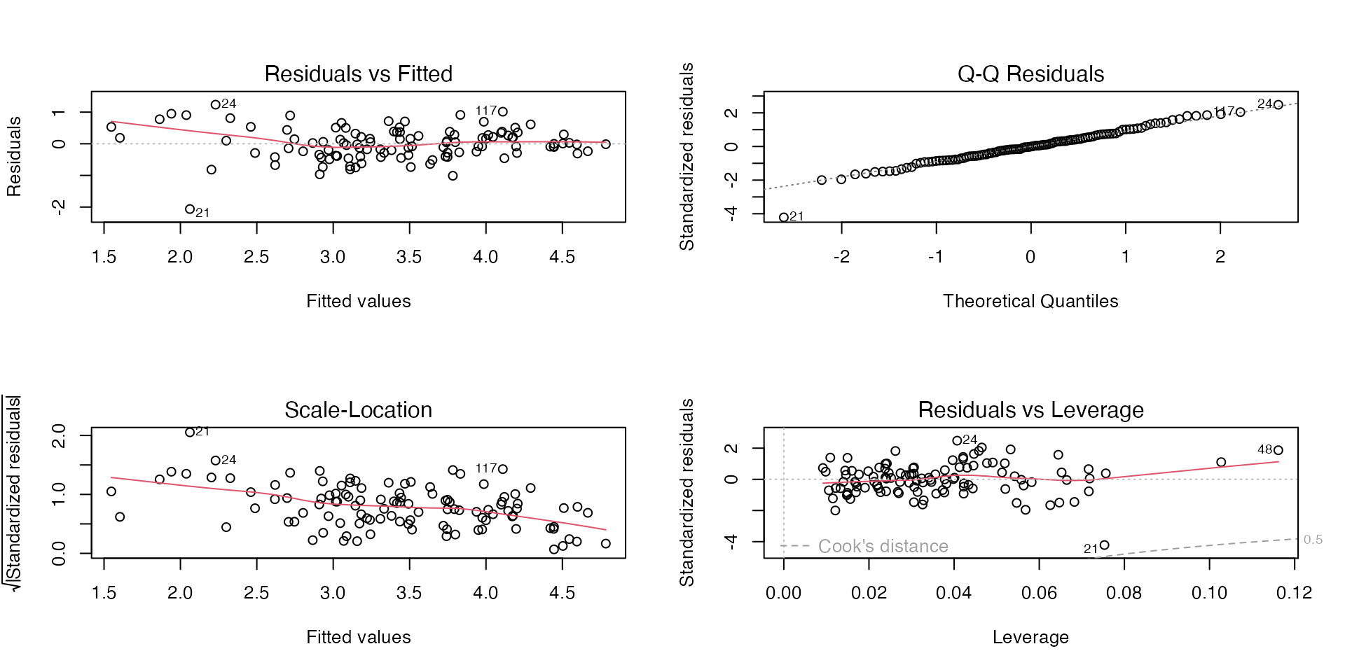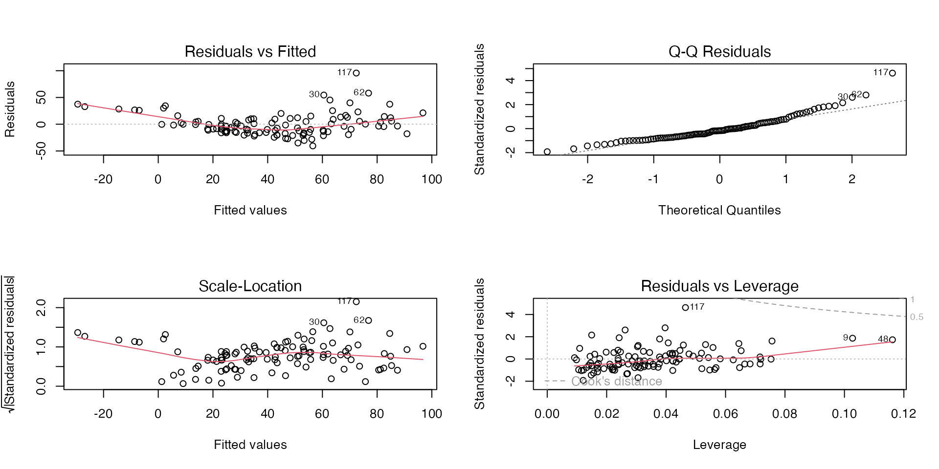 As with Simple Linear Regression, we need to check the assumptions of the model (LINE):