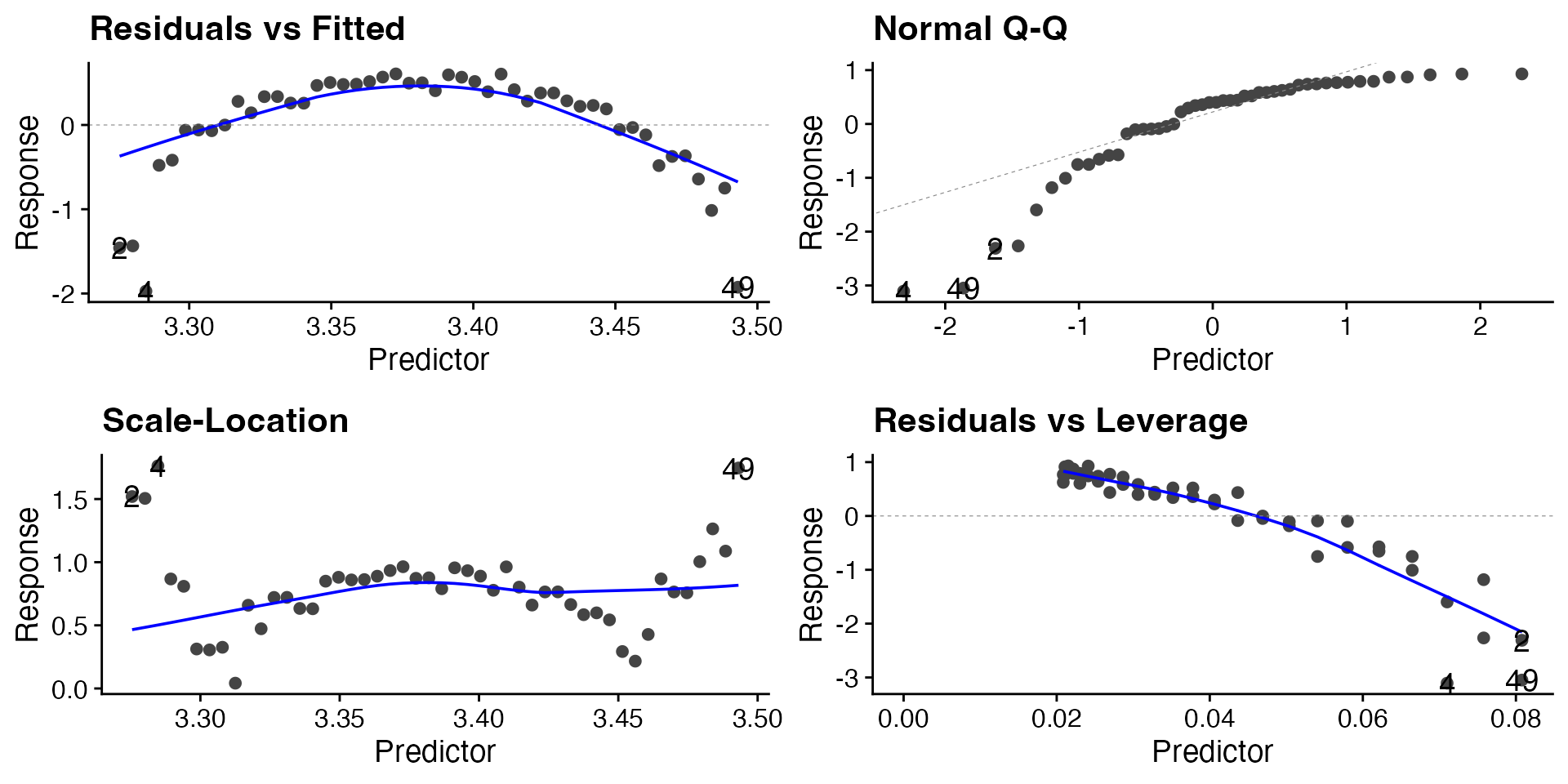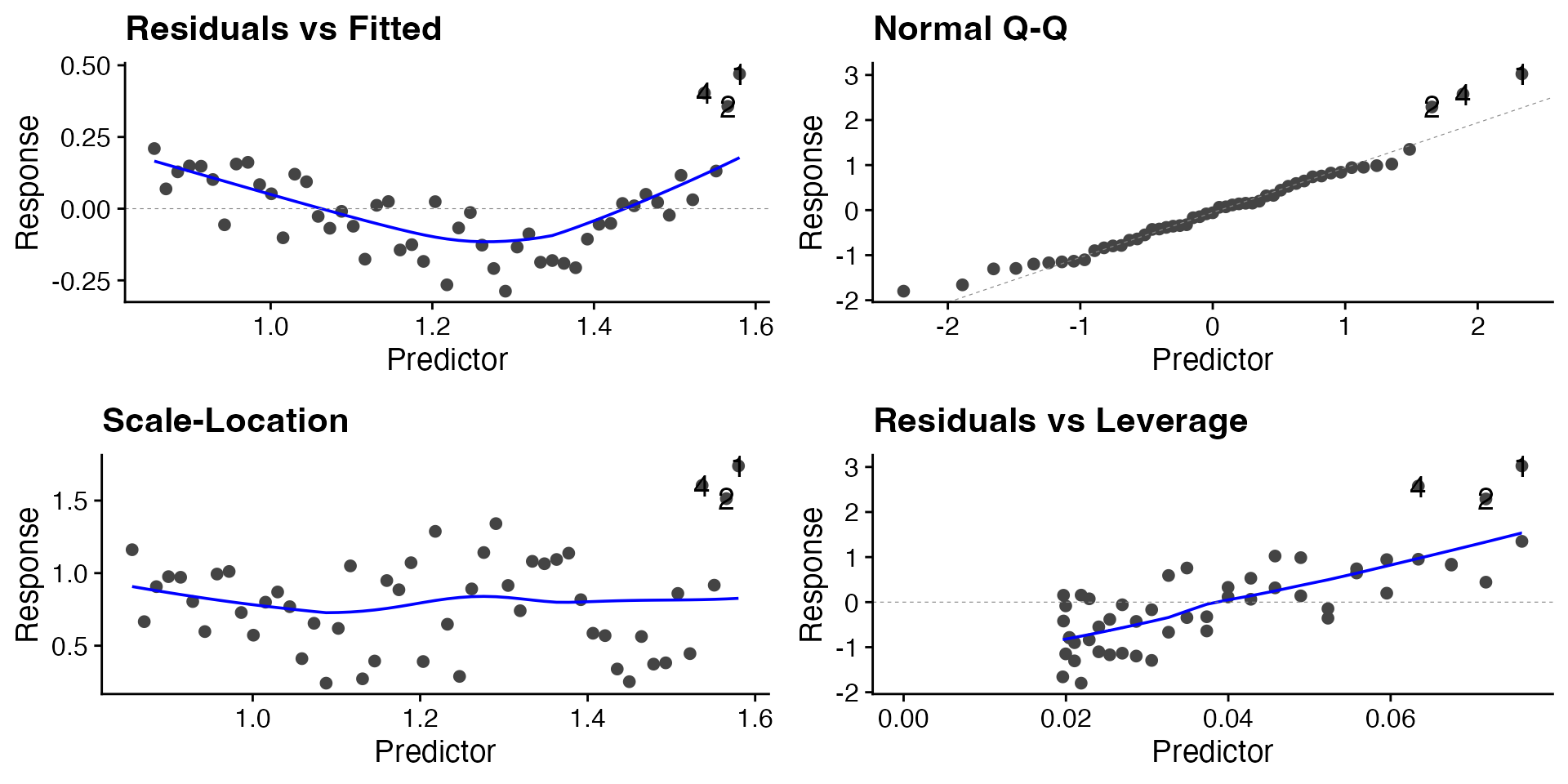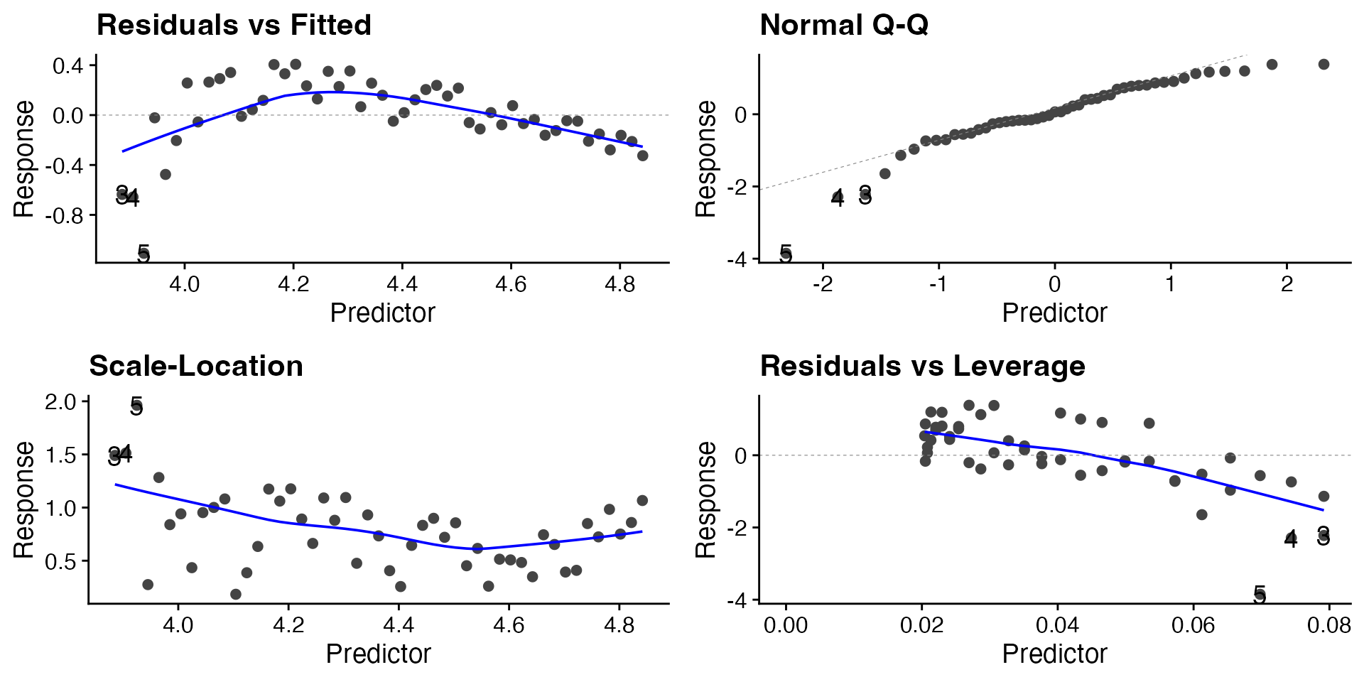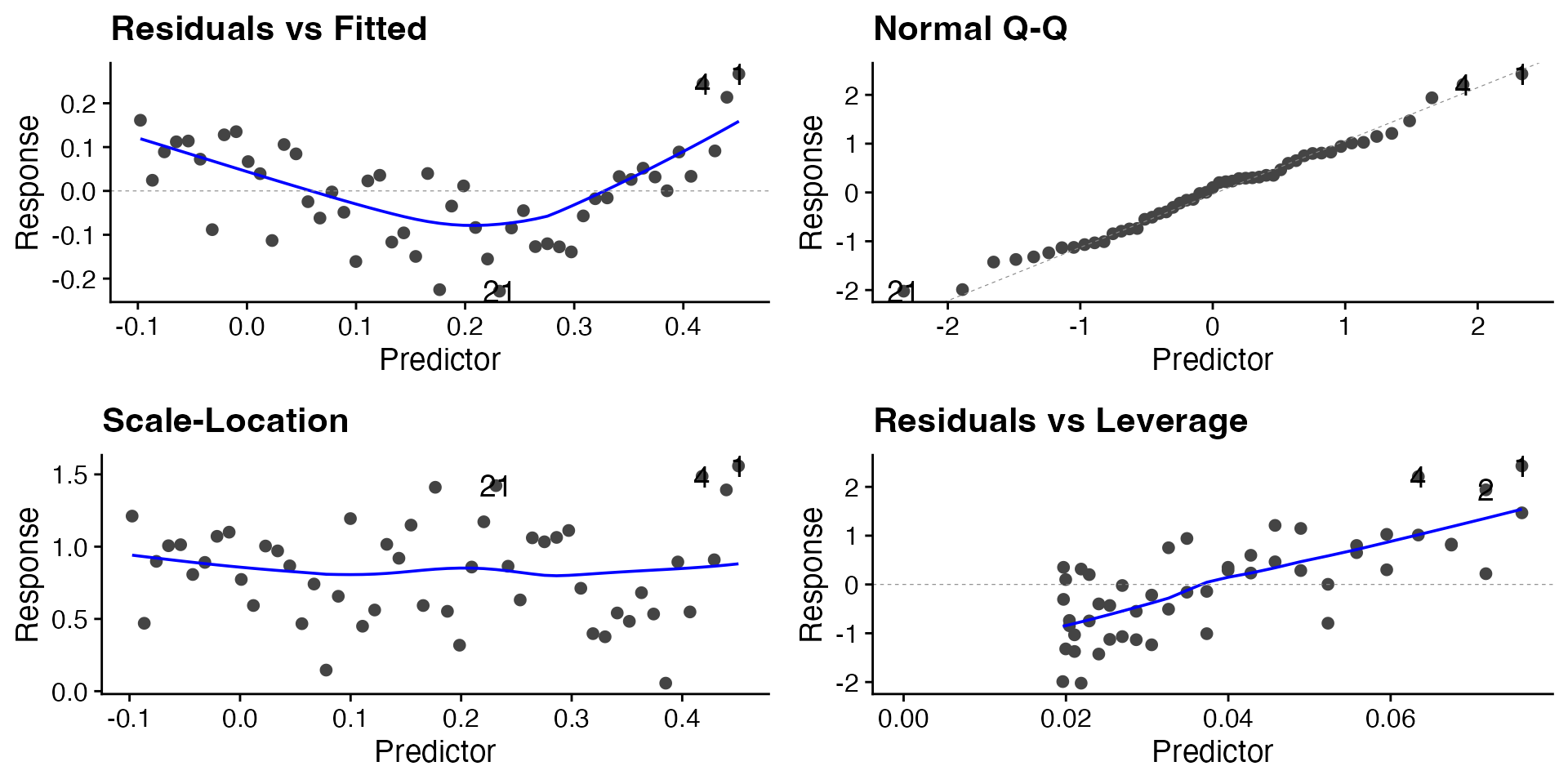 labs(x = "Predictor", y = "Response") +