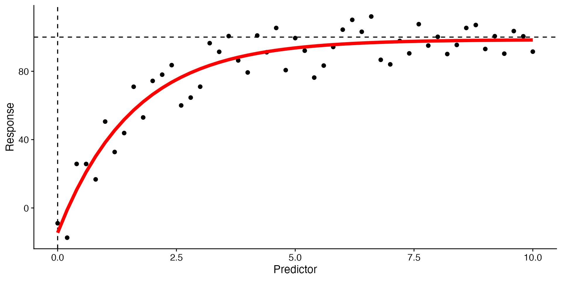 ggplot(data = asymptotic, aes(x = predictor, y = response)) +