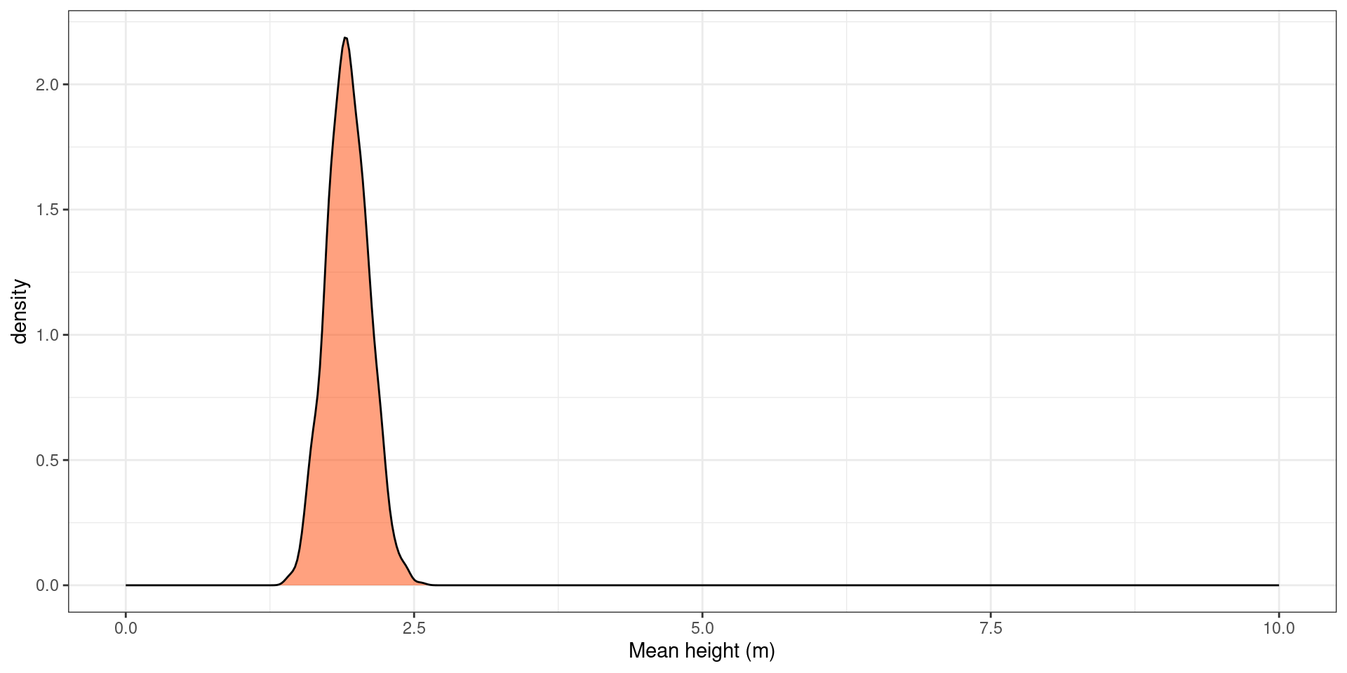 annotate("text", x = 5.6, y = 0.09, label = "Mean", color = "red") +