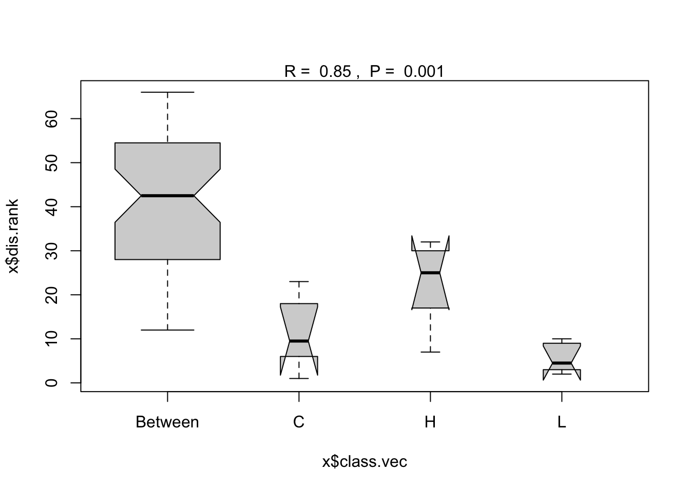 anosim(x = copepod.dis, grouping = group)