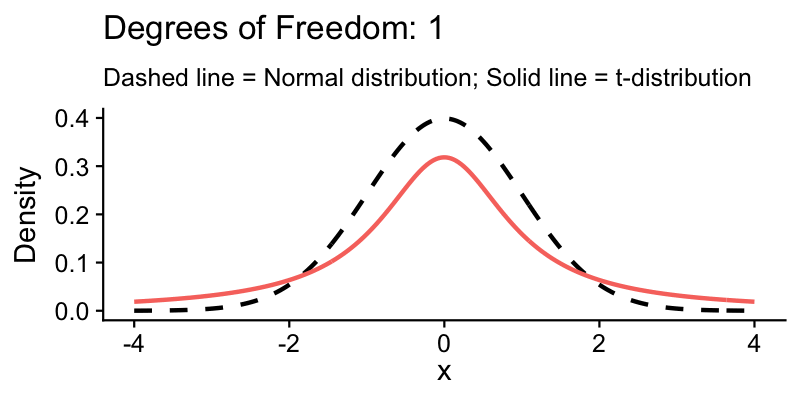 The t-distribution accounts for this extra uncertainty. It has heavier tails than the normal, meaning more probability in the extremes.
