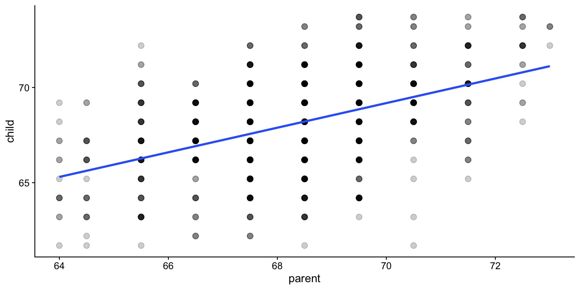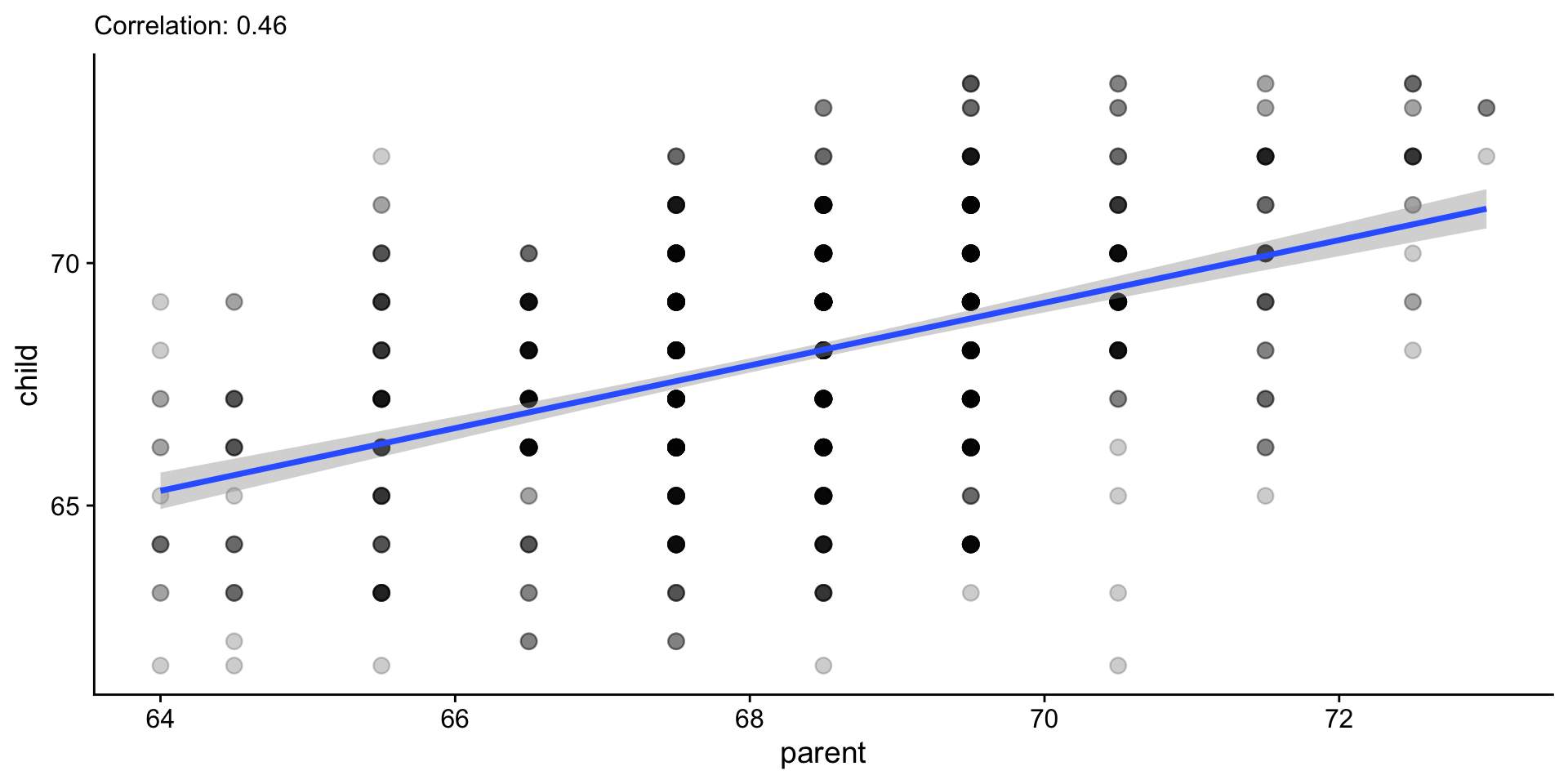 An example with Galton’s data: parent and child heights.