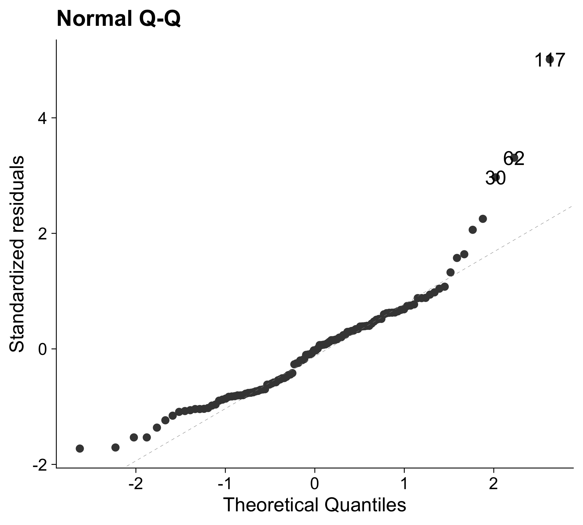 \[Standardised\ residual = \frac{Residual}{Standard\ error\ of\ the\ residual}\]