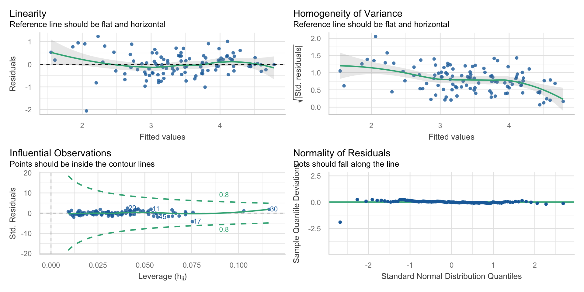 theme_classic()The data must meet certain criteria, which we often call assumptions. They can be remembered using LINE: