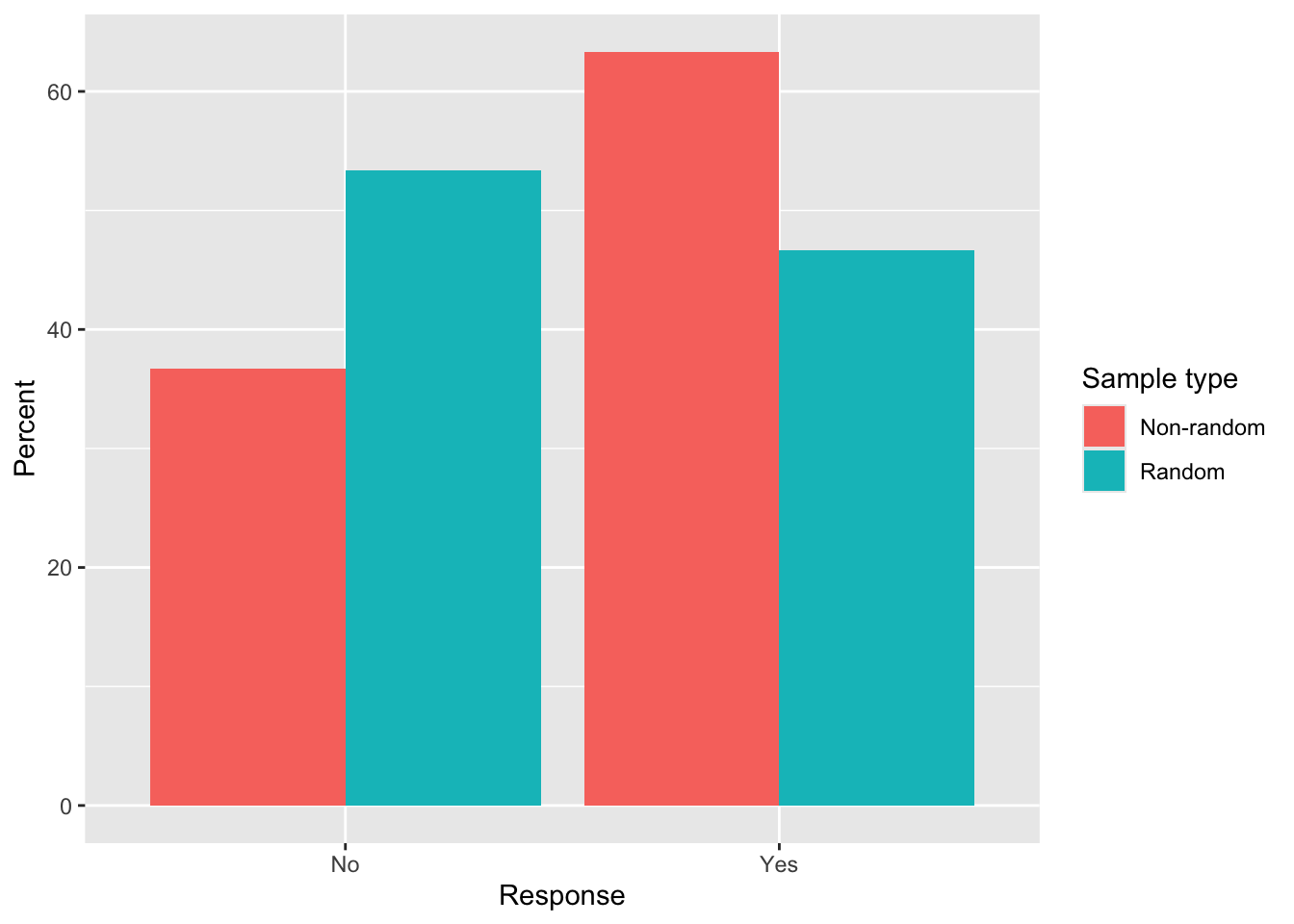 percent = c(prop_yes_nonrandom, prop_no_nonrandom, prop_yes_random, prop_no_random)